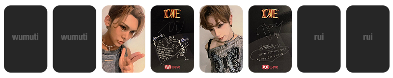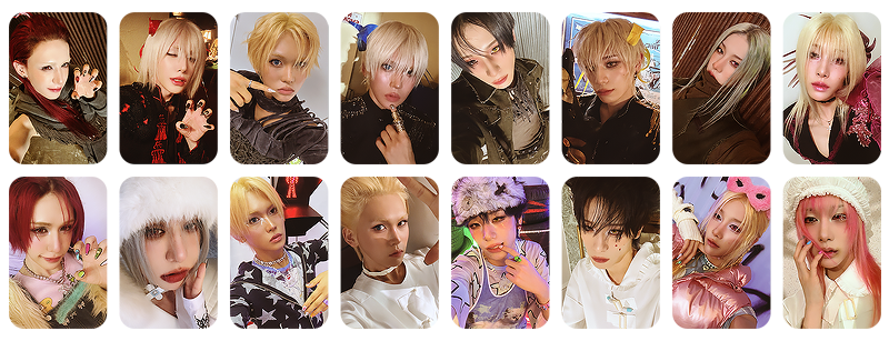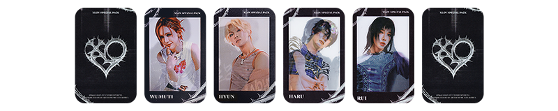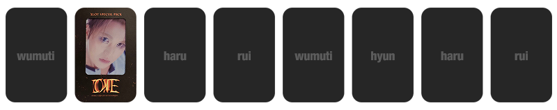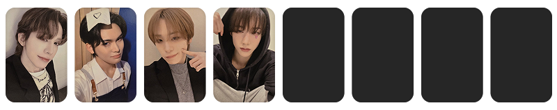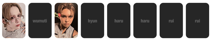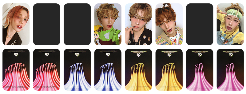 1 of each member • set: 0/4 - 1/4 secured - Missing Hyun, Haru & Rui